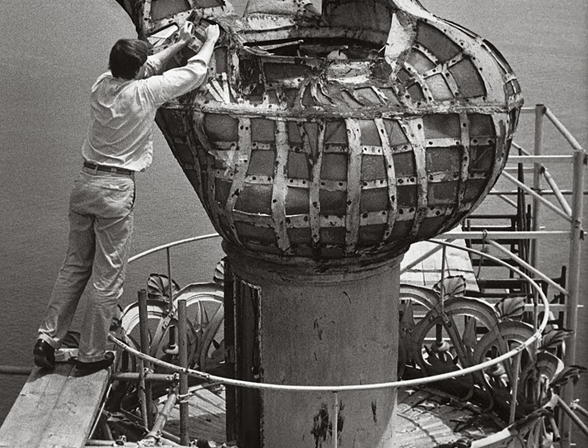 The Foundation, working with its public partner, the National Park Service, first tackled the restoration of the Statue of Liberty. A century of weather, pollution, and sightseeing had left Lady Liberty’s torch in need of replacement, her crown’s rays in need of strengthening, and pieces of her gown, hair and face in need of repairs. An army of architects, historians, engineers, and almost 1,000 laborers embarked on the project — which also involved the installation of new elevators and an informative exhibit in the Statue’s base.