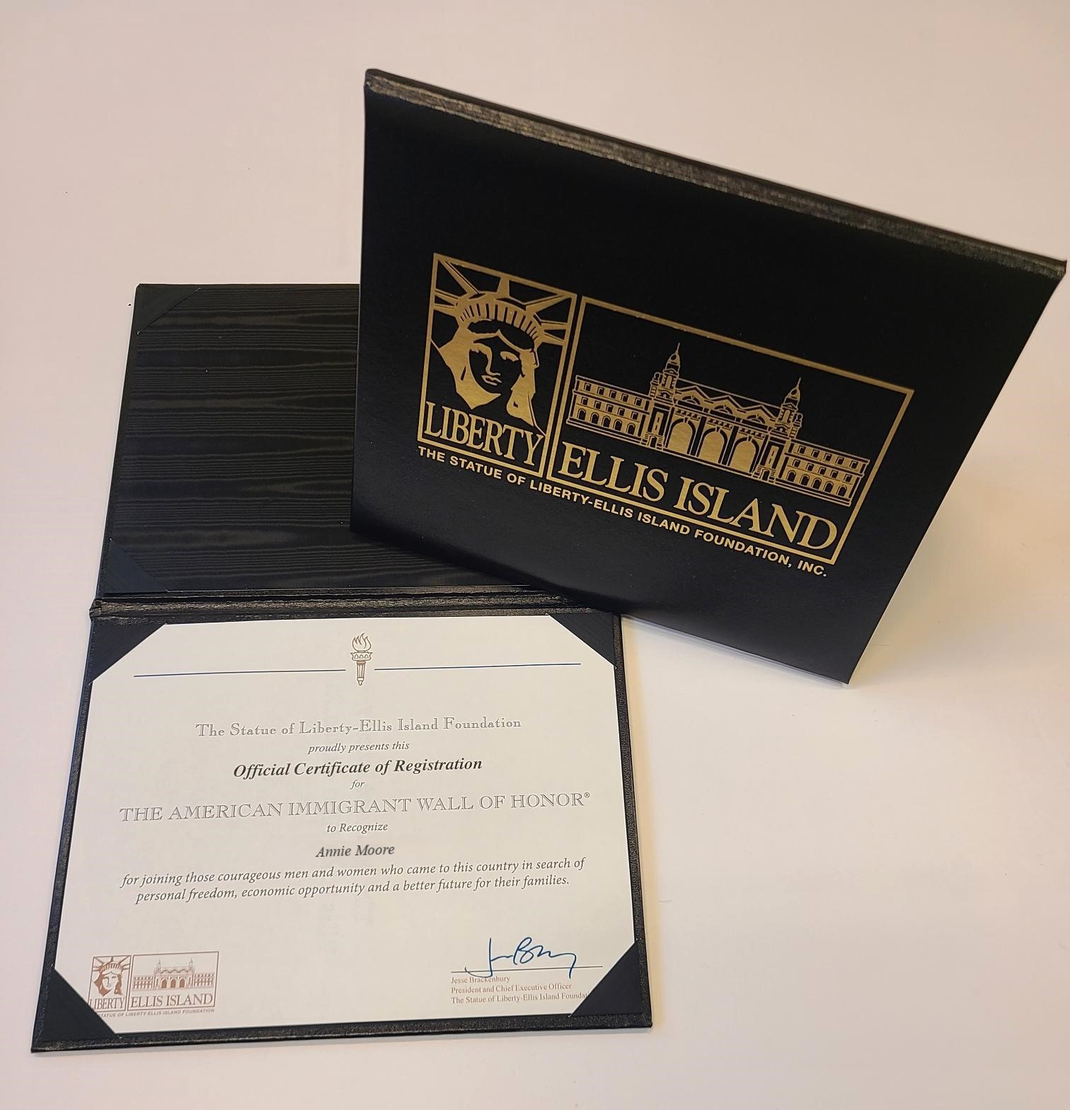 FRAME YOUR WALL OF HONOR CERTIFICATE! Your Official Certificate of Registration will look so beautiful in our logo embossed document holder -- perfect for gift giving! For more information call 212-561-4588.